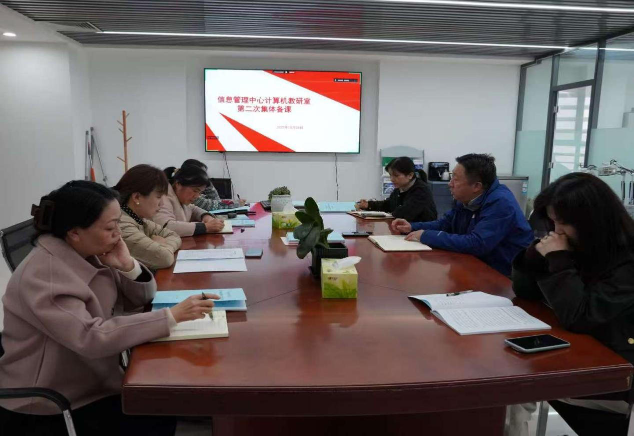 为切实提升教育教学质量,营造良好育人环境,10月28日,计算机教研室在737会议室召开了2025-2026学年第一学期教研会议暨第二次集体备课活动。信息管理中心书记赵新辉、副主任王小伟,教研室主任于景茹以及教研室全体教师参与研讨,共同为本学期人工智能通识课程改革和教学质量提升建言献策。